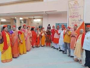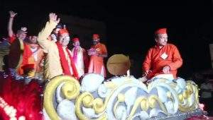 शोभायात्रा पर पुष्प वर्षा