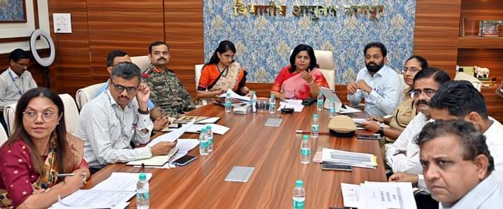 नागपूर विभागातील मान्सूनपूर्व नियोजनाचा आढावा आज विभागीय आयुक्त कार्यालयाच्या सभागृहात घेण्यात आला. त्यावेळी मार्गदर्शन करतांना विभागीय आयुक्त बोलत होत्या. यावेळी जिल्हाधिकारी डॉ. विपीन इटनकर, मुख्य कार्यकारी अधिकारी सौम्या शर्मा, जिल्हा पोलीस अधिक्षक हर्ष पोद्दार, विभागातील सर्व जिल्हाधिकारी, मुख्य कार्यकारी अधिकारी, जिल्हा पोलीस अधिक्षक, आरोग्य, जलसंपदा, सार्वजनिक बांधकाम, रेल्वे, वायुसेना, आर्मी, भारतीय हवामान खाते, एनडीआरएफ, एसडीआरएफ, पोलीस, स्थानिक स्वराज्य संस्था आदी विभागाचे वरिष्ठ अधिकारी उपस्थित होते.