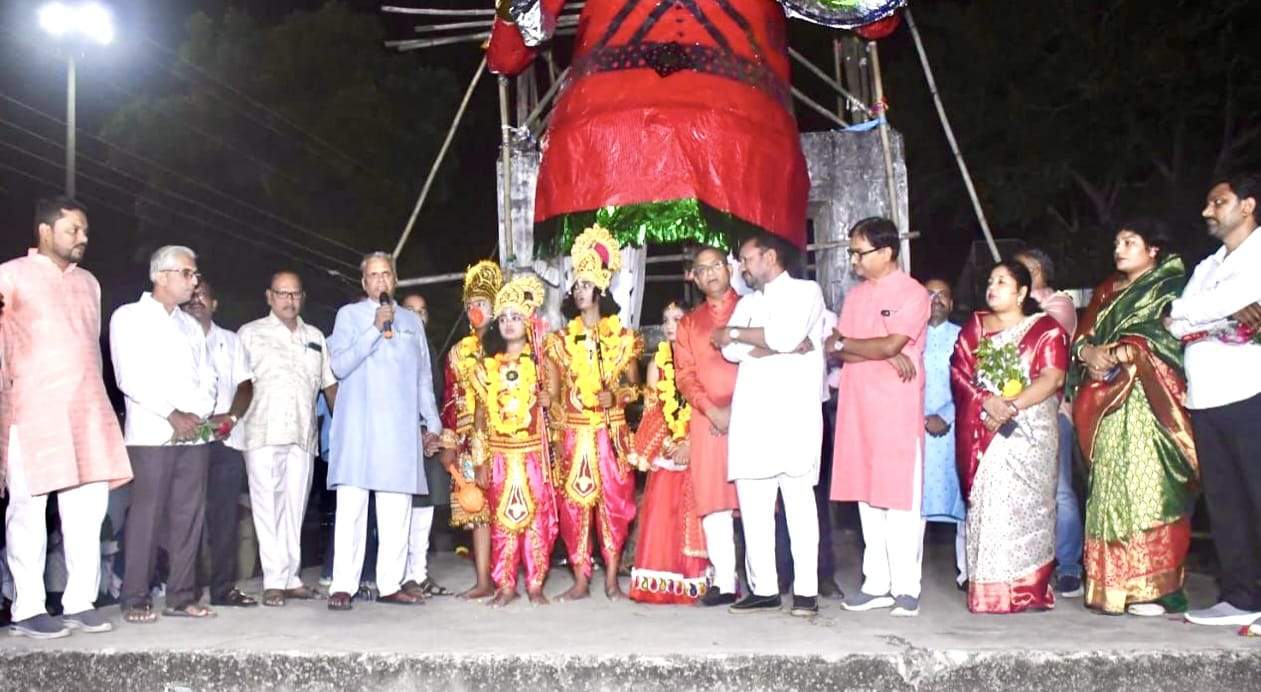 दशहरा मेले की शुरुआत प्रभु श्रीरामचंद्र की पालकी के नगरभ्रमण से हुई। पालकी मैदान पर आने के बाद रावण दहन किया गया और “जय श्रीराम” के नारों से वातावरण गूंज उठा।