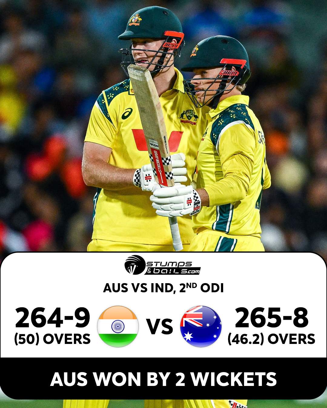 एडिलेड के एडिलेड ओवल स्टेडियम में ऑस्ट्रेलिया ने टॉस जीतकर पहले गेंदबाजी का फैसला किया। भारत ने 50 ओवर में 9 विकेट पर 264 रन बनाए। इसके जवाब में ऑस्ट्रेलिया ने 265 रन के लक्ष्य को 46.2 ओवर में हासिल किया। ऑस्ट्रेलिया के लिए मैथ्यू शॉर्ट और कूपर कोनोली ने बेहतरीन अर्धशतकीय पारी खेली।