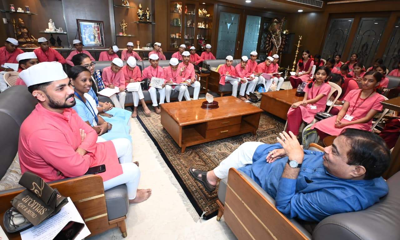 ज्ञान प्रबोधिनी, निगडी पुणे या संस्थेतील सातवी-आठवीच्या ४६ विद्यार्थ्यांशी आज, शुक्रवार, दि. ३१ ऑक्टोबरला ना. श्री. गडकरी गडकरी यांनी संवाद साधला. मंत्री महोदयाच्या निवासस्थानी या विद्यार्थ्यांनी भेट दिली व त्यांच्या मनातील प्रश्न ना. श्री. गडकरी यांना विचारले. नेतृत्वकौशल्य, राजकारणातील प्रवेश, बालपण, महामार्गांचे व उड्डाणपुलांचे जाळे, कुटुंबाला वेळ देणे, छंद आदी विषयांवरील प्रश्न विद्यार्थ्यांनी ना. श्री. गडकरी यांना विचारले.