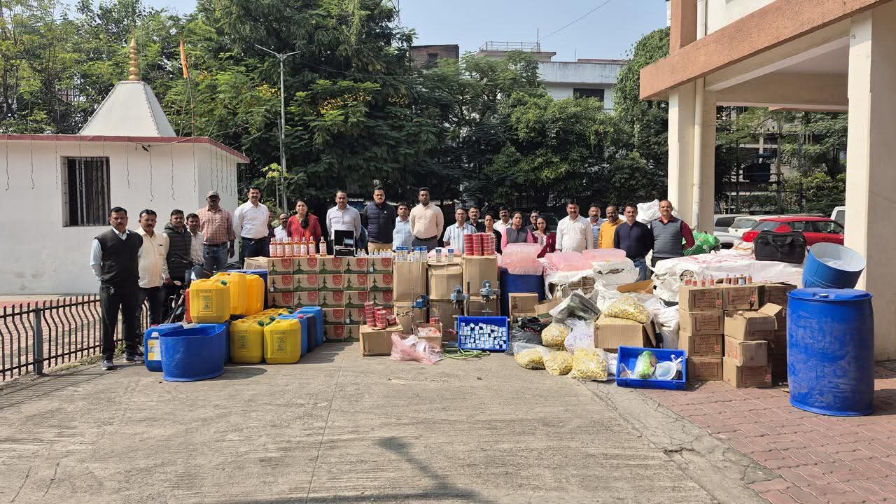 नागपूर समाचार : हुडकेश्वर पोलीस स्टेशन अंतर्गत बेसा येथील रो-हाऊस, प्लॉट नं. 38 क्रिष्णा रॉयल, न्यू हनुमान नगर येथे राज्य उत्पादन शुल्क नागपूर विभागाने बनावट देशी-विदेशी दारु निर्मितीच्या अवैध कारखान्यावर छापा टाकून धडक कारवाई केली. या ठिकाणी छाप्यामध्ये बनावट देशी / विदेशी दारुचा कारखान्यासह मुद्देमाल जप्त करण्यात आला.