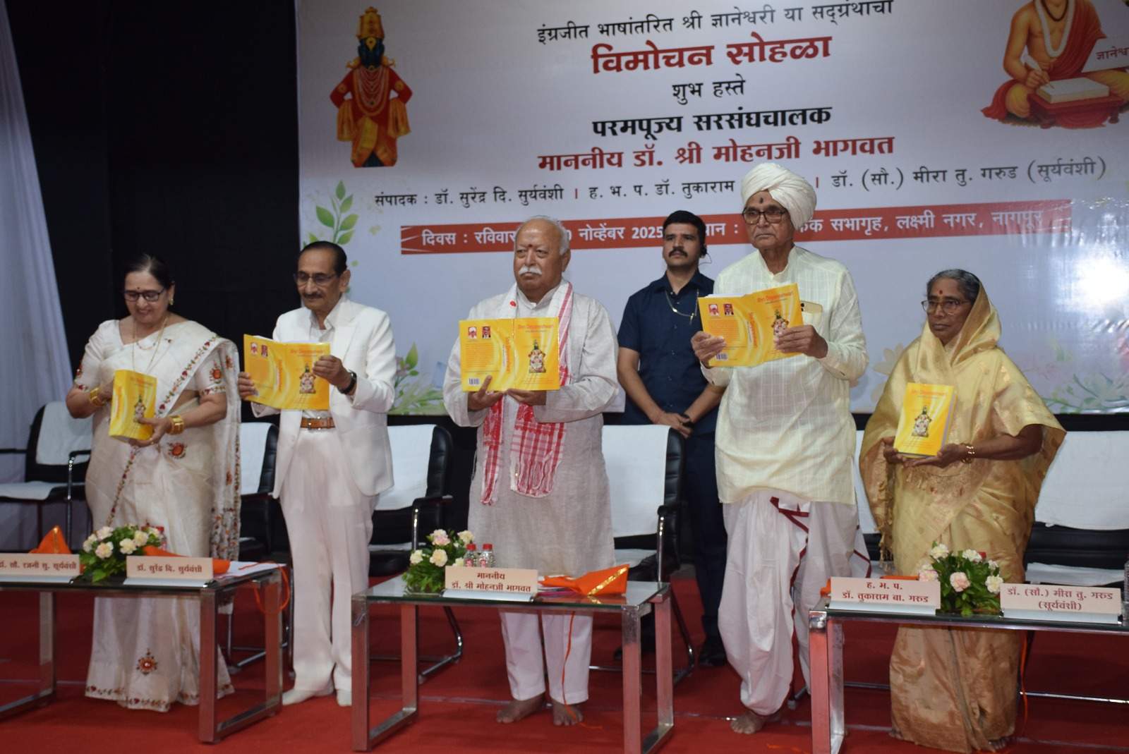 नागपुर समाचार : संत श्रेष्ठ ज्ञानेश्वर मौली के आशीर्वाद से, डॉ. सुरेंद्र (सचिन) सूर्यवंशी, हरिभक्त परायण डॉ. तुकाराम गरुड़, डॉ. सौ मीरा तुकाराम गरुड़ (सूर्यवंशी) और डॉ. श्रीमती रजनी सूर्यवंशी ने छह वर्षों के अथक परिश्रम के बाद संपूर्ण ज्ञानेश्वरी ग्रंथ का अंग्रेजी में अनुवाद करने में सफलता प्राप्त की है।