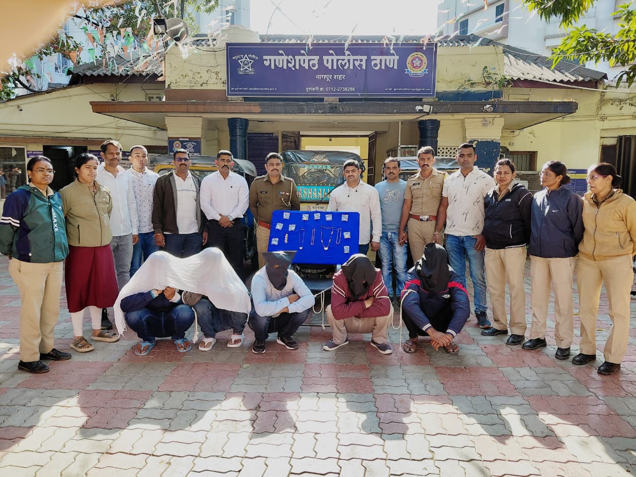 इमरान उर्फ सोनू इजाज खान (वय ४१), रा. लोधीपुरा, जुना जेलखाना जवळ, गणेश पेठ; सध्या रा. बजरंग नगर, गल्ली नं. ९, अजनी शहादद खान हबीब खान (वय २८), रा. गौसिया कॉलनी, दिघोरी, पो.ठा. हुडकेश्वर, नागपूर अब्दुल नदिम वल्द नईम शेख (वय २८), रा. बारा खेली, दिघोरी चौक, पठाण पेट्रोल पंपाजवळ आसिम अहमद जमीर अहमद (वय ४२), रा. मकसूद तनपुर हफीज, ता. जि. बिजनौर रविंद्र कुमार उर्फ दालू भुरे सिंग (वय ५०), रा. मकसूद तनपुर हफीज, ता. जि. बिजनौर आरोपींकडून सोन्याचे दागिने, रोख रक्कम व इतर मौल्यवान वस्तू असा मोठ्या प्रमाणावर मुद्देमाल जप्त करण्यात आला आहे. या टोळीने यापूर्वीही अशाच प्रकारच्या चोरी केल्याचा संशय असून, पोलिसांकडून सखोल चौकशी सुरू आहे.
