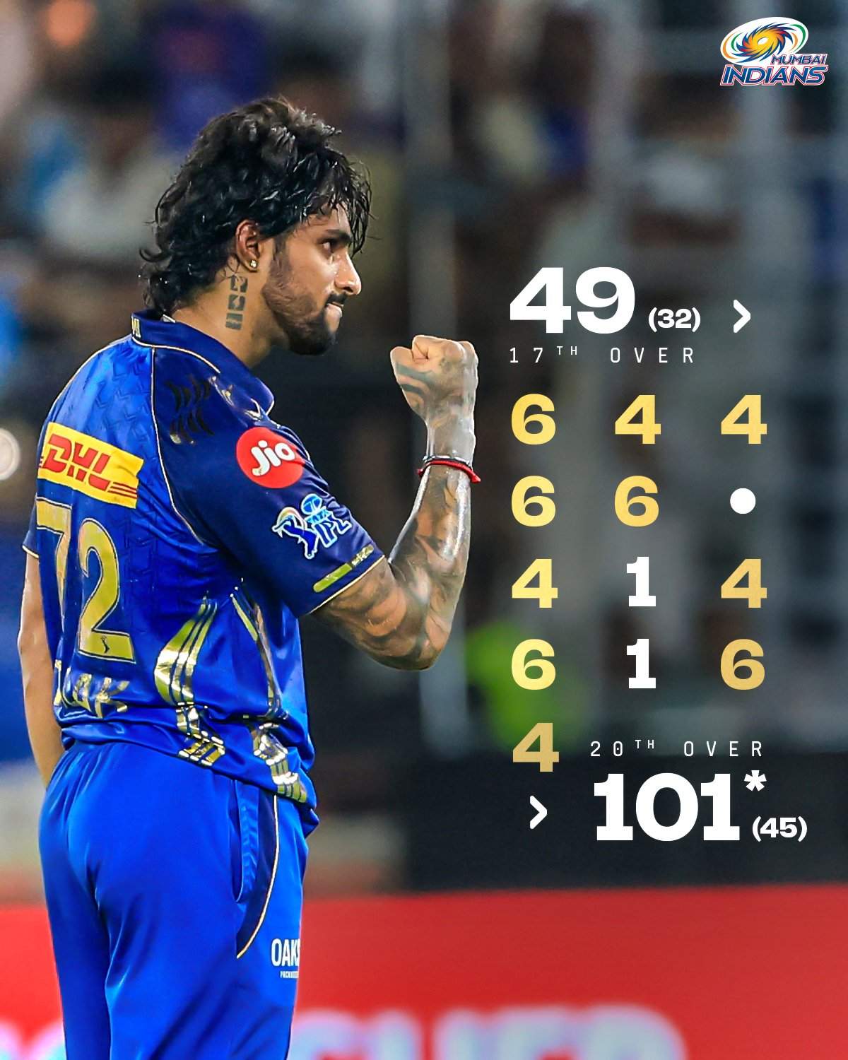 - 101* (45) – तिलक वर्मा (MI) बनाम GT, अहमदाबाद, 2026