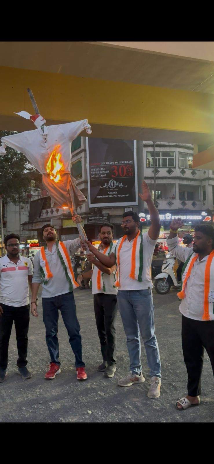 रेशीमबाग मैदान में बागेश्वर धाम के धीरेंद्र शास्त्री की कथा चल रही थी। इसी दौरान उनके बयान के विरोध में युवा कांग्रेस के कार्यकर्ताओं ने नारेबाजी करते हुए उनका पुतला जलाकर अपना आक्रोश व्यक्त किया।