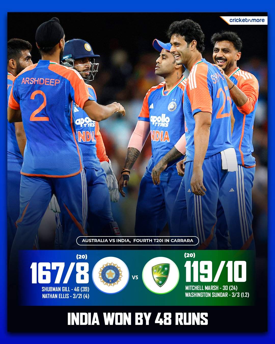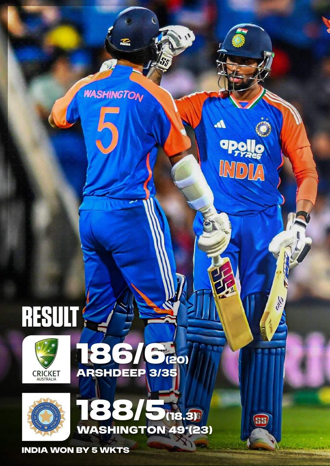 खेल समाचार : वाशिंगटन सुंदर की बेहतरीन पारी, भारत ने ऑस्ट्रेलिया को 5 विकेट से हराया