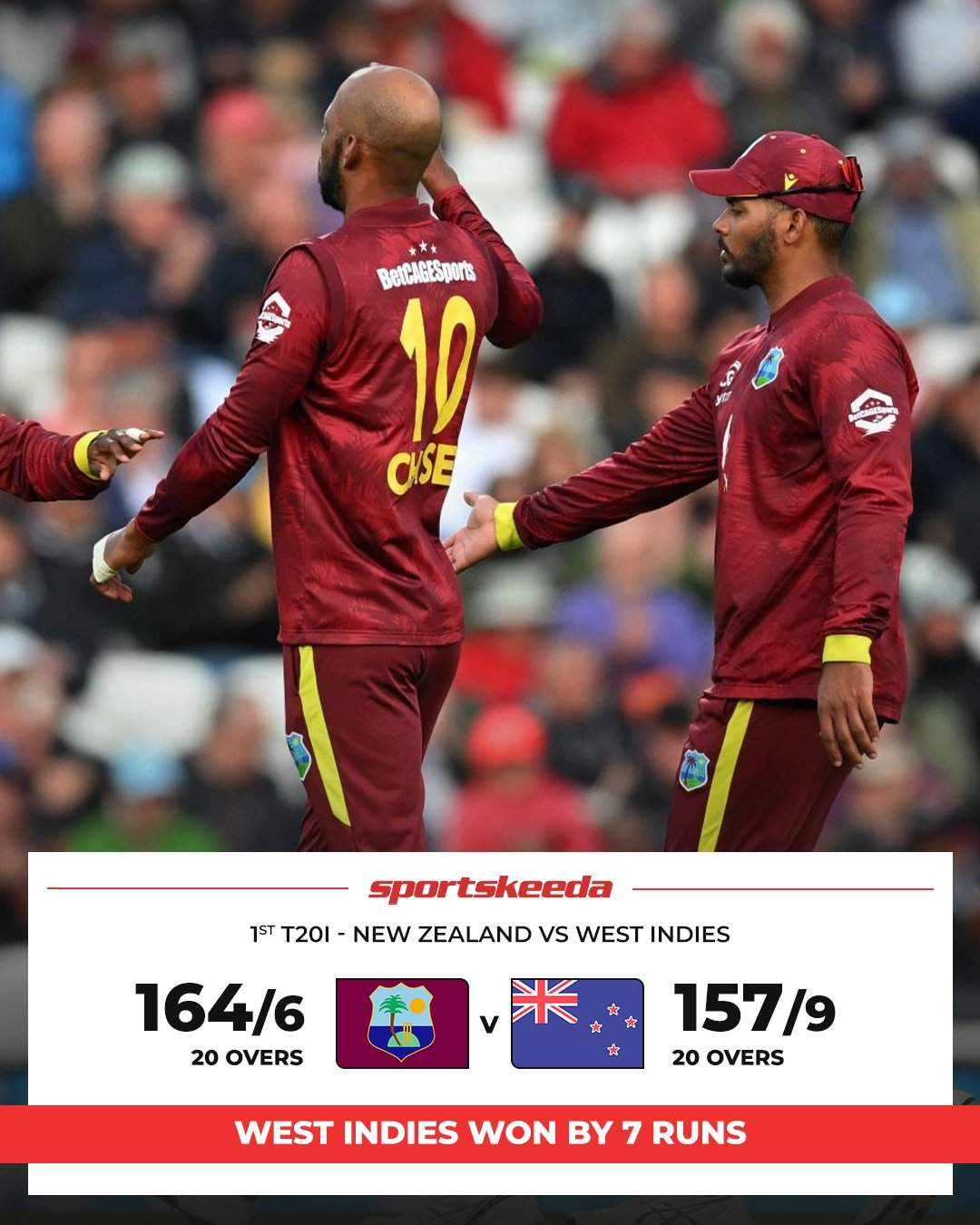 खेल समाचार : वेस्टइंडीज ने रचा इतिहास, ईडन पार्क का T20I का सबसे छोटा स्कोर बचाया, न्यूजीलैंड को सात रन से हराया
