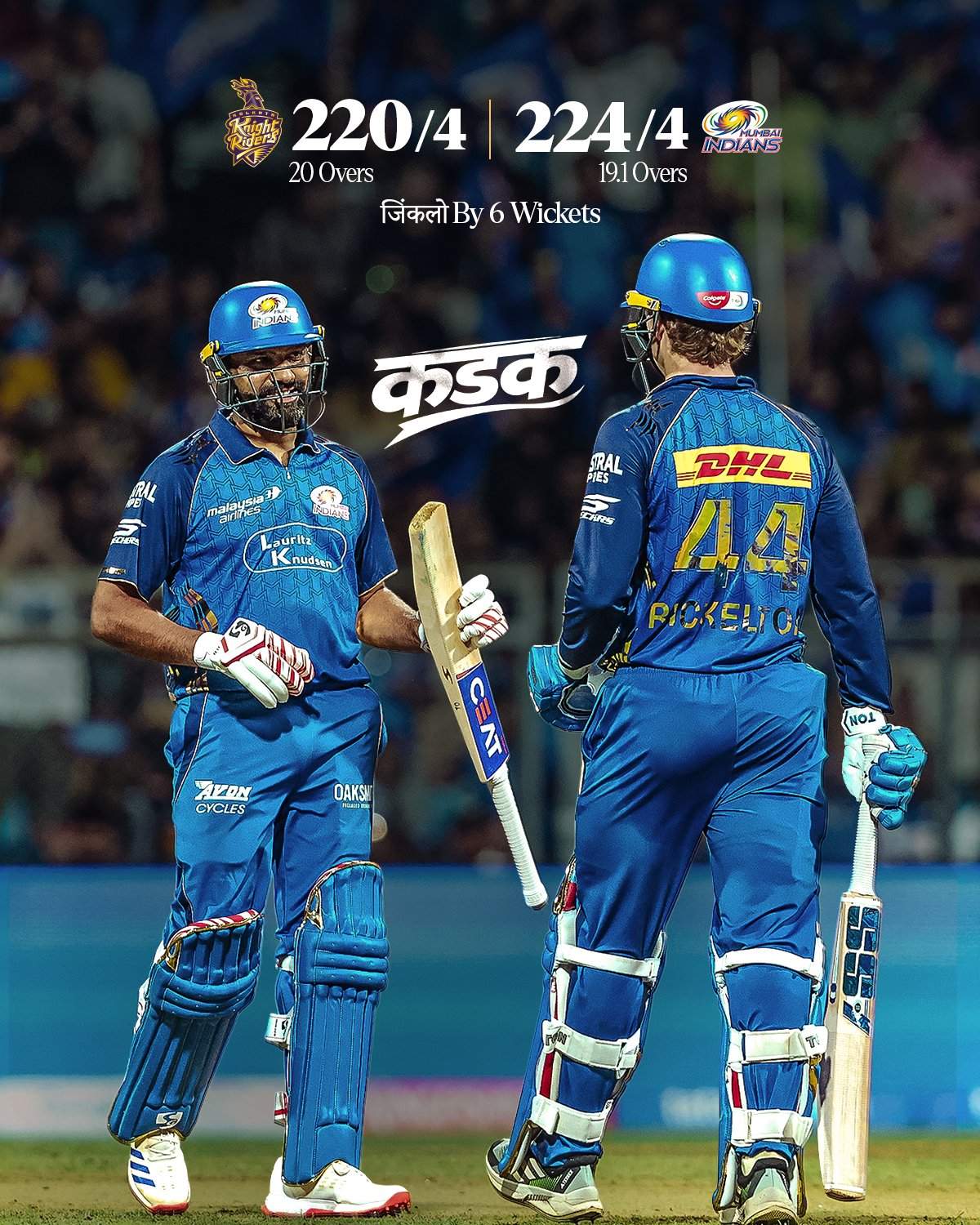 IPl समाचार : रिकलटन और रोहित शर्मा के विस्फोट में उड़ी कोलकाता नाइट राइडर्स, मुंबई इंडियंस को पहले मैच में मिली 6 विकेट से जीत
