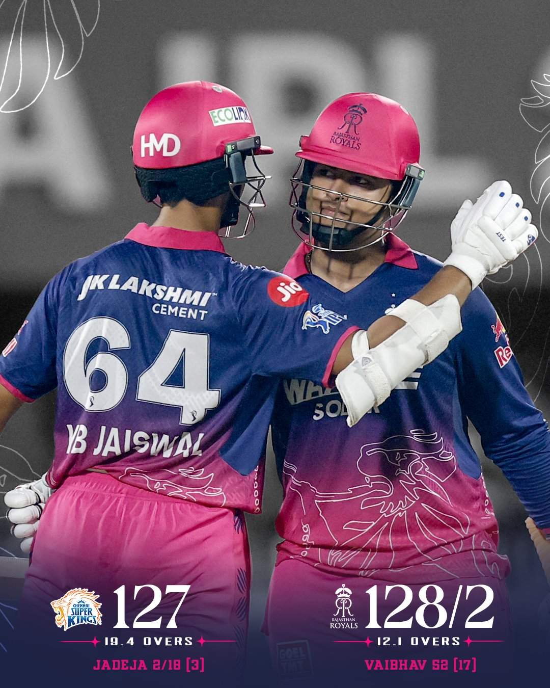IPL समाचार : राजस्थान रॉयल्स ने अपने पहले मैच में चेन्नई सुपर किंग्स को 8 विकेट से हराया